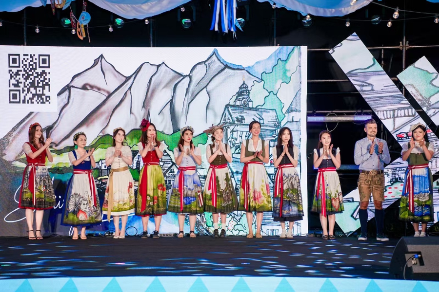 啤酒节开幕式现场气氛热烈欢快,大巡游调动起现场国内外友人的热情,来自欧洲的专业乐队用音乐点燃现场,奥地利知名设计师带来的民族服饰走秀,赢得了现场嘉宾的阵阵掌声。