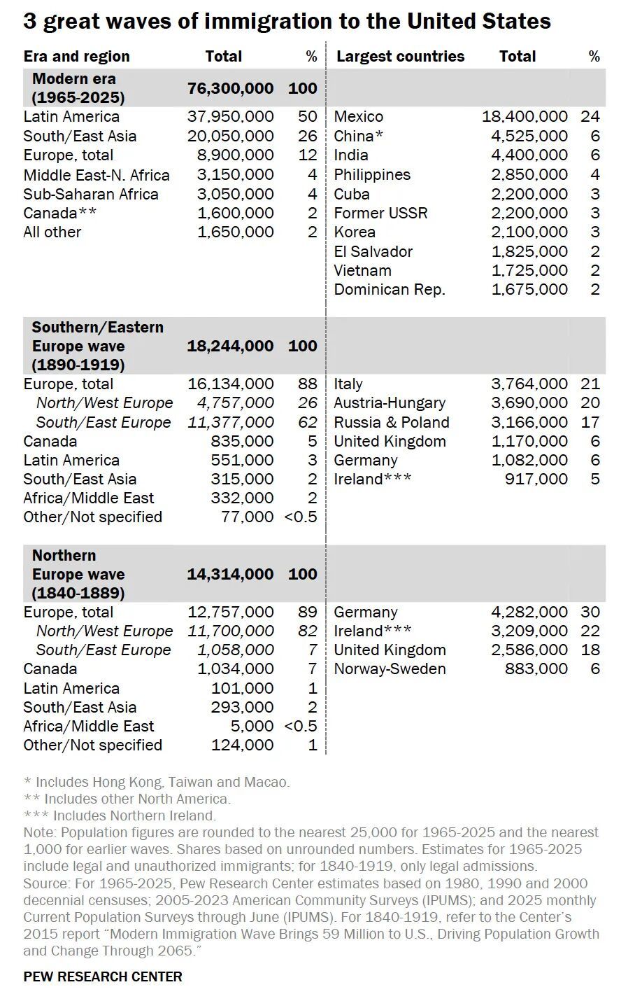 美国三次移民潮移民来源▼