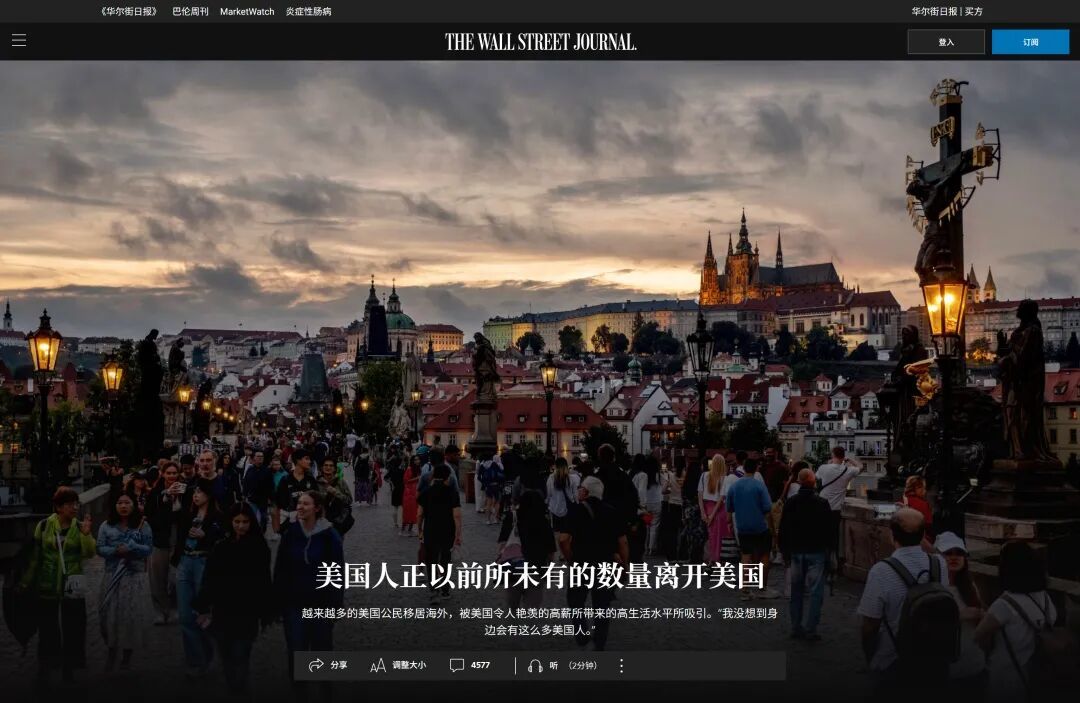 《华尔街日报》统计的欧洲15国数据显示,2025年至少有18万美国人移入欧洲。